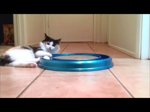 Creme Brulee the Cat playing with Bergan Turbo Scratcher Cat Toy Very cute! - Bergan Cat Toys - Creme Brulee's first time playing with the Bergan Turbo Scratcher Cat Toy! Please watch in HD! Please visit Creme Brulee's facebook page for cute daily photos!